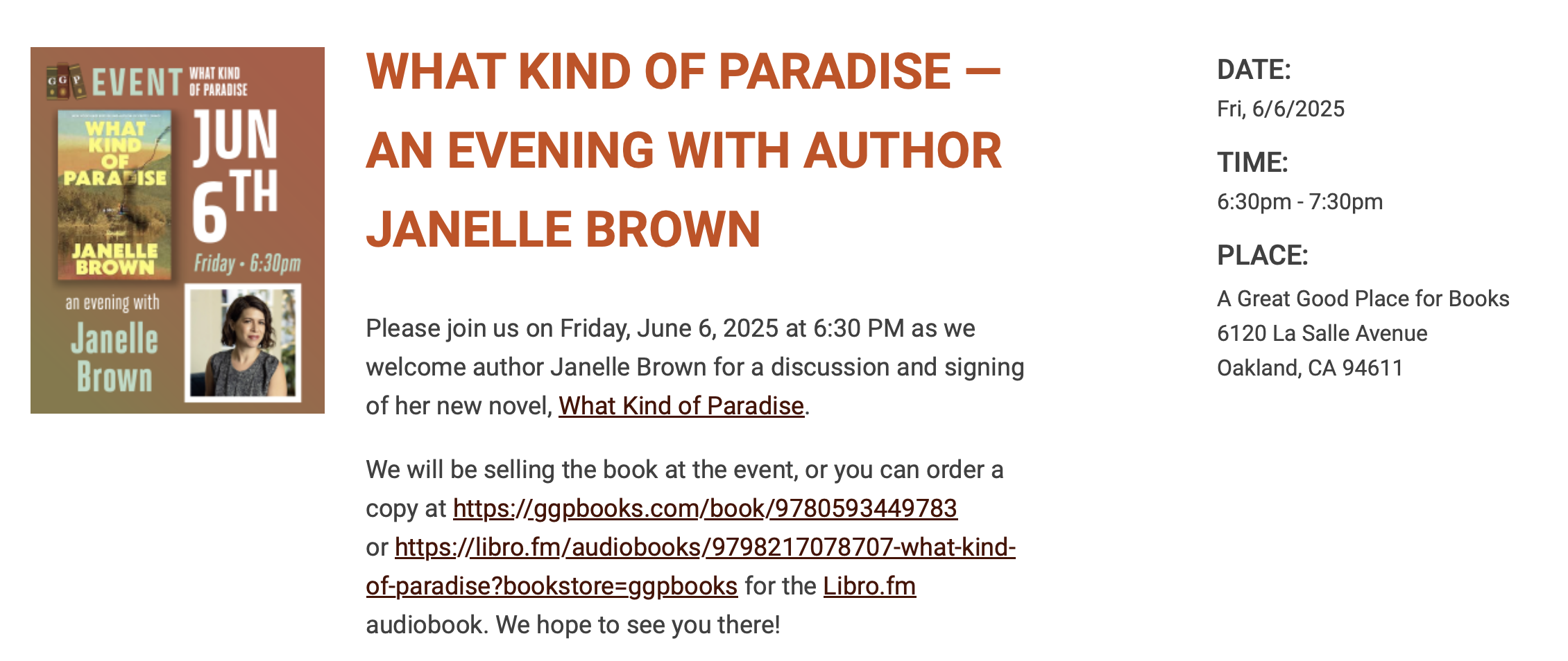 Great Good Place for Books - Oakland